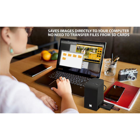Unlike other frustrating scanners that require you to remove the tray and re-position slides each time, our easy-load insert system allows for continuous feeding, speeding up the scanning process significantly. Two slide adapters are also provided for compatibility with plastic carton and cardboard slide frames. You can finally ditch the expensive SD cards, microscopic displays and stressful on-board buttons—and simply scan! Add a KODAK Film Scan Tool to your cart today!