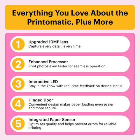 -          ZERO INK TECHNOLOGY – Ditch the ink, toner, cartridges, and films. ZINK technology creates vibrant, full color sticky-backed 2x3” photos with incredible resistance to water, tears, and smudges, no ink needed.