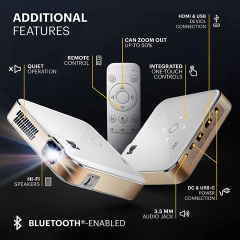 Compatible with HDR 10, this 200 lumen projector keeps brighter video sharp and vivid while keeping darker video deep and clear.